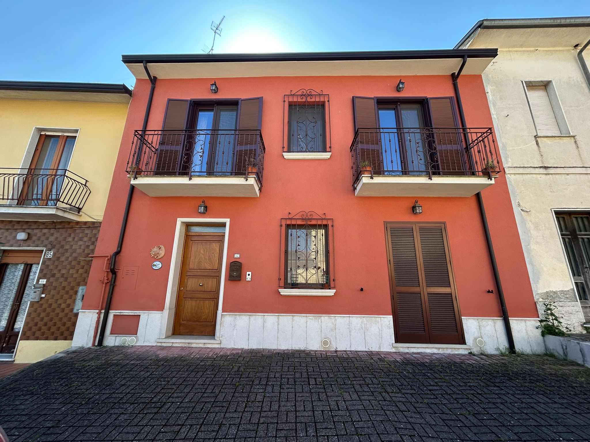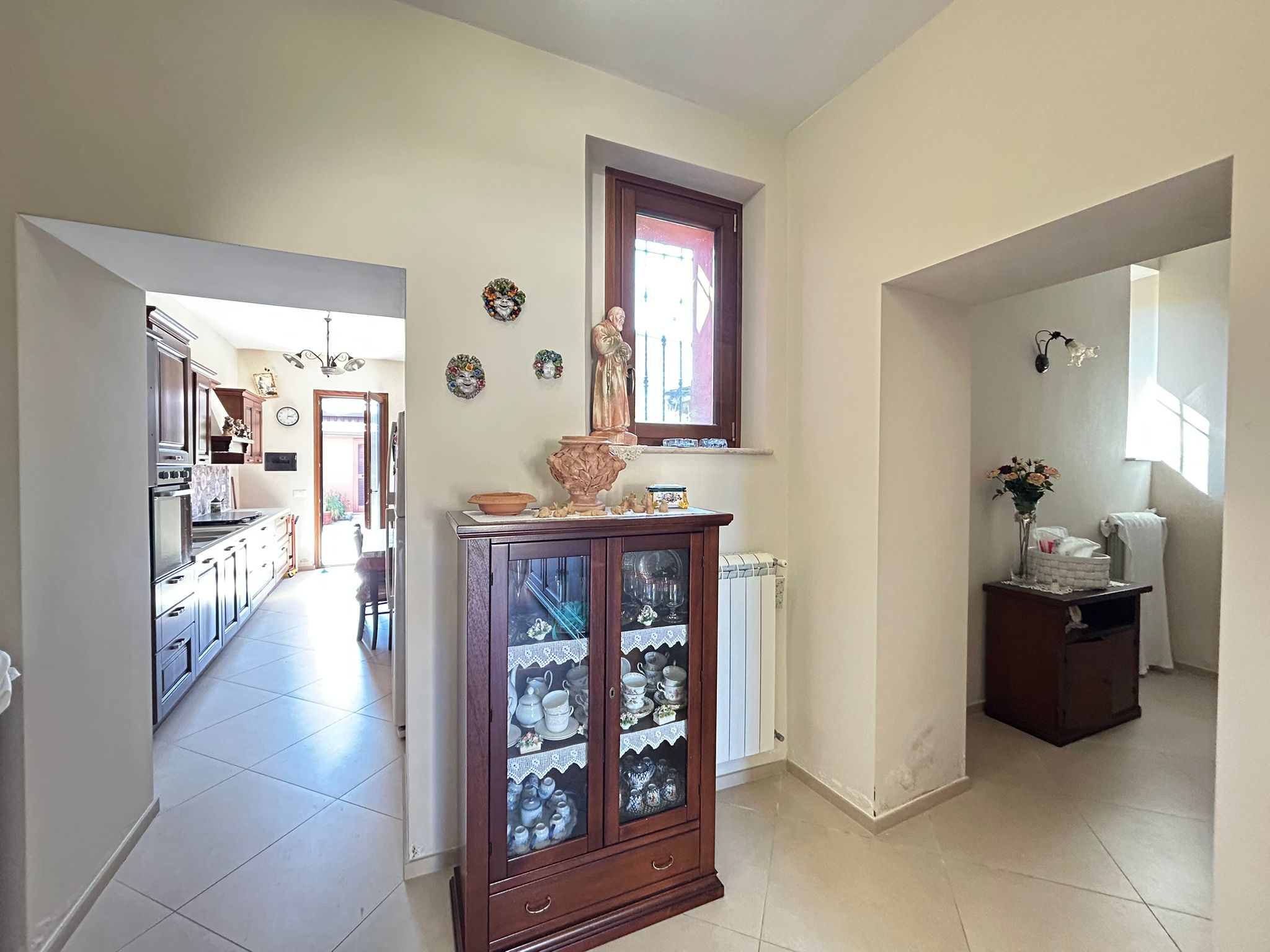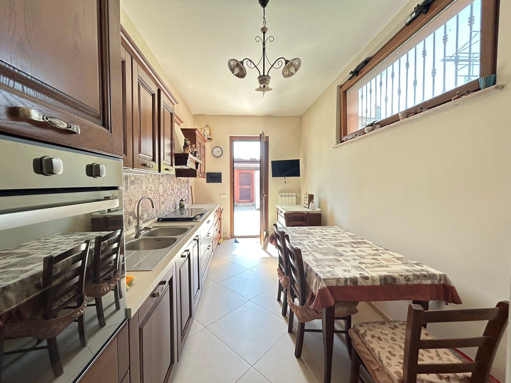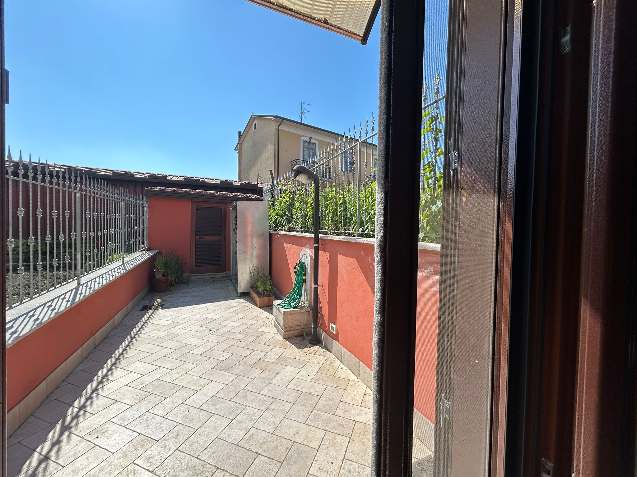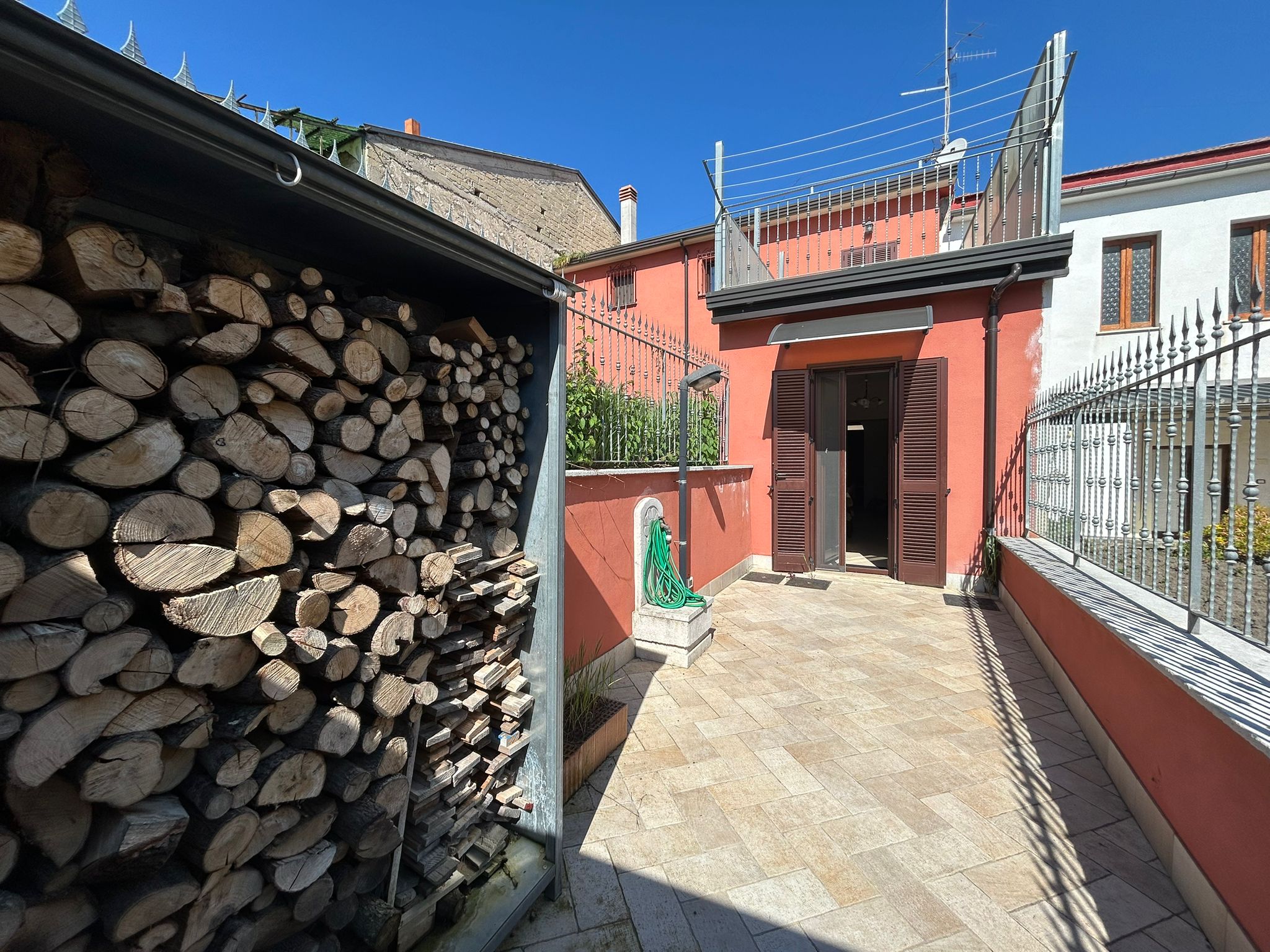 Piano terra – ingresso, salone, sala da pranzo con camino, wc, cucina e piccolo patio esterno con cantinola attrezzi