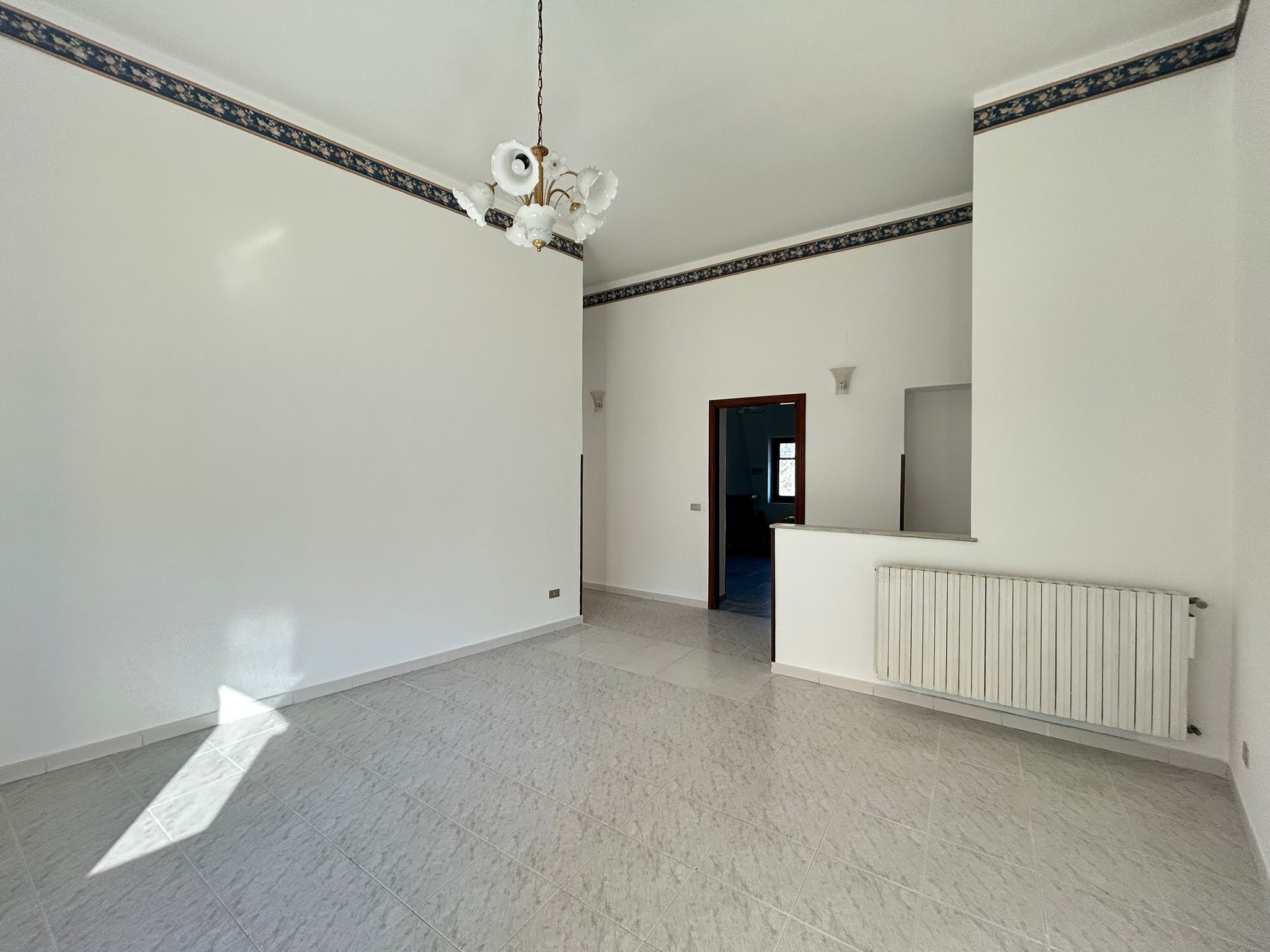 Detto appartamento è così suddiviso: ingresso, salone, cucina con camino, bagno, 3 camere di cui una con terrazzo, ripostiglio e un ulteriore bagno nella zona notte.